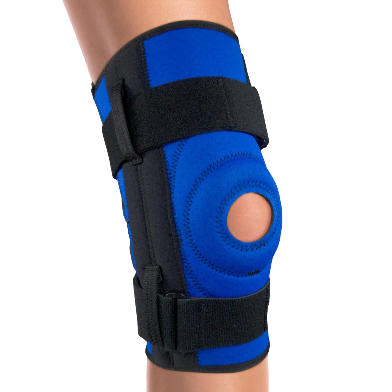Soporte ortopédico profesional diseñado para brindar compresión terapéutica y estabilidad articular sin comprometer la movilidad. Fabricado en neopreno resistente y libre de látex, lo que permite una excelente retención de calor para mejorar la circulación y reducir el dolor. Cuenta con una almohadilla estabilizadora en la zona rotuliana y varillas laterales que proporcionan soporte adicional. Su diseño anatómico incluye una apertura frontal para liberar presión sobre la rótula y evitar irritaciones. El material es transpirable, lo que favorece la ventilación y reduce la acumulación de humedad durante su uso prolongado