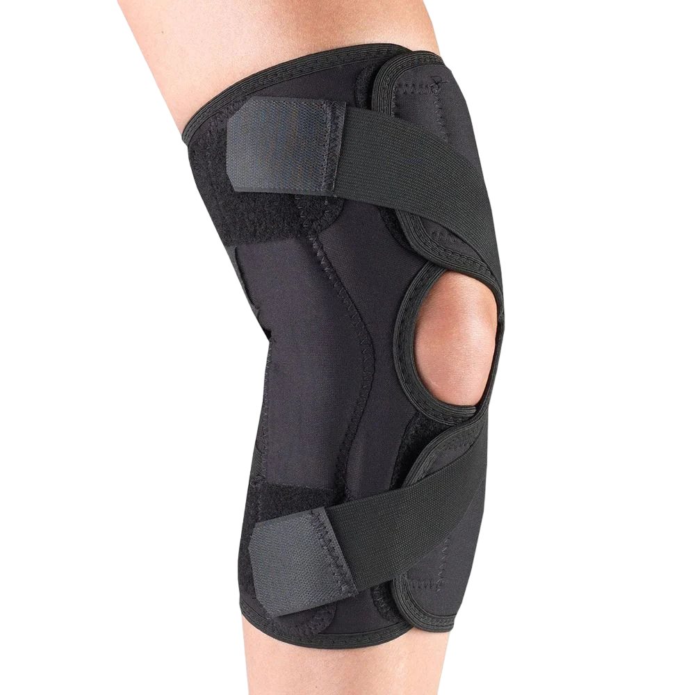 La venda para rodilla ortopédica está diseñada para proporcionar soporte firme y alivio terapéutico en casos de osteoartritis, síndrome de presión lateral e inestabilidad rotuliana.