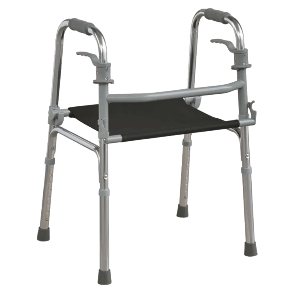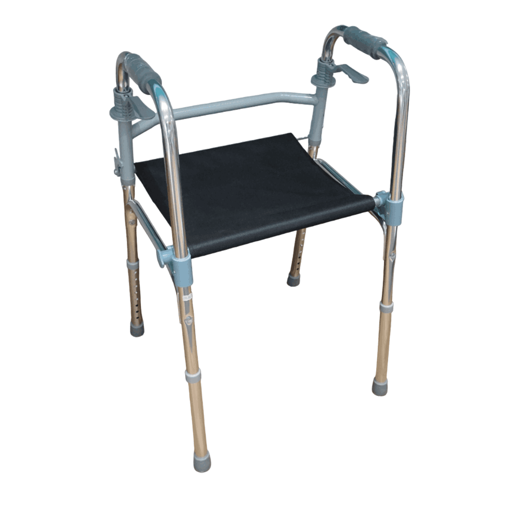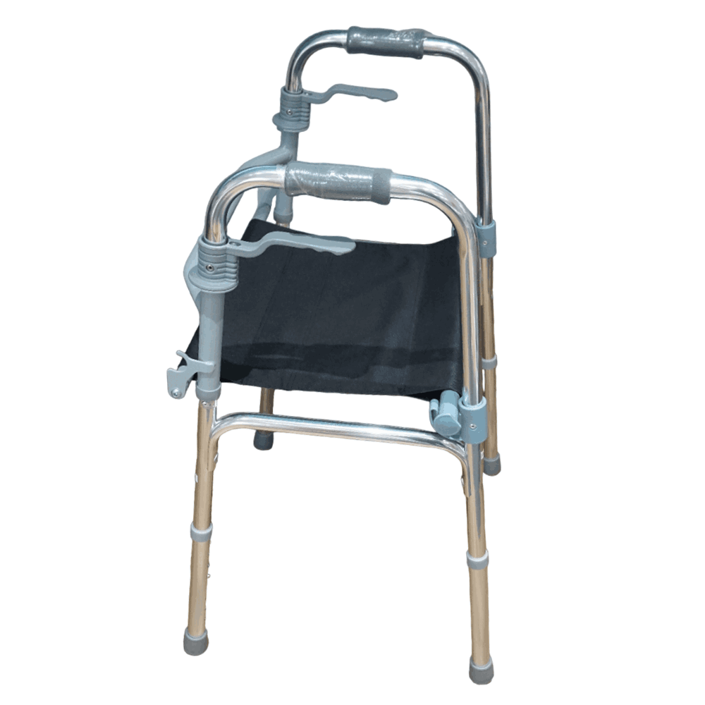 La andadera JL961L está fabricada con estructura de aluminio liviano, lo que permite facilidad en el manejo y resistencia al uso prolongado. Cuenta con una superficie de asiento intermedio reforzado, lo que permite al usuario descansar cuando sea necesario. Posee empuñaduras ergonómicas y patas ajustables en altura, ideales para adaptarse a diferentes estaturas. Sus regatones antideslizantes aseguran mayor estabilidad.