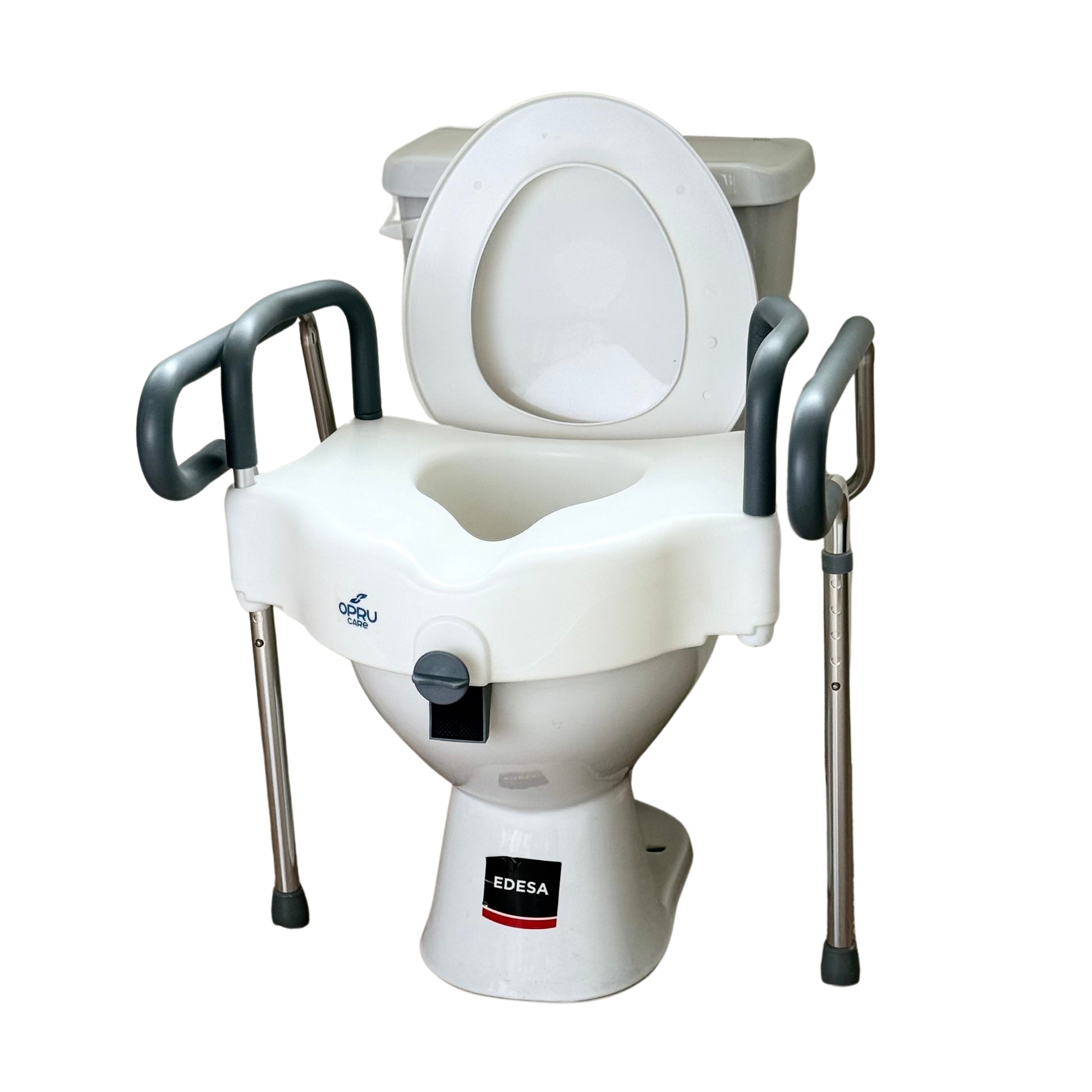 Fabricado en material plástico resistente, ofrece una superficie estable y fácil de limpiar. Su función principal es elevar la altura del inodoro, reduciendo el esfuerzo al sentarse y levantarse, lo que ayuda a prevenir caídas y facilita la autonomía del usuario.