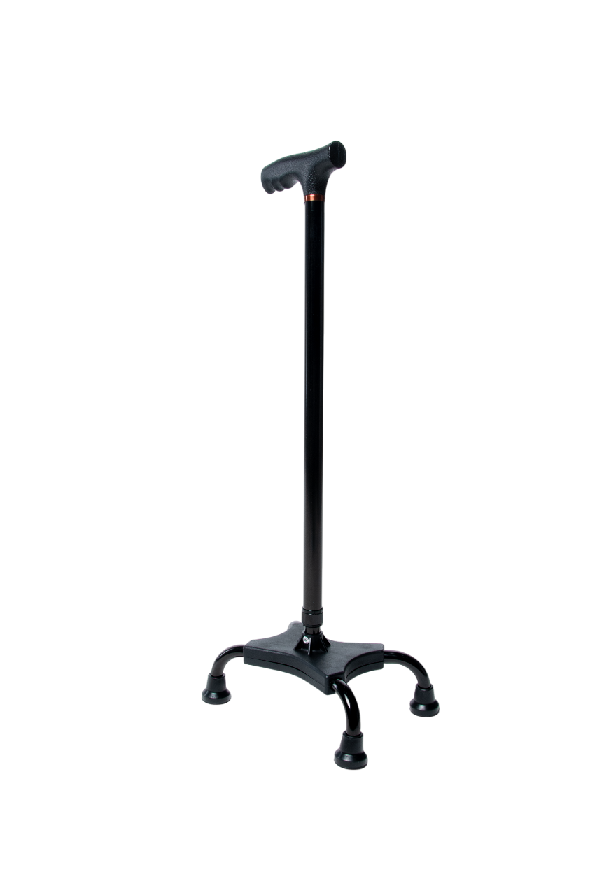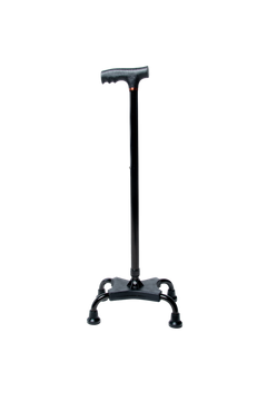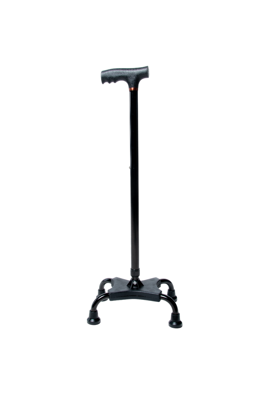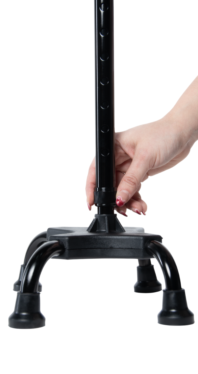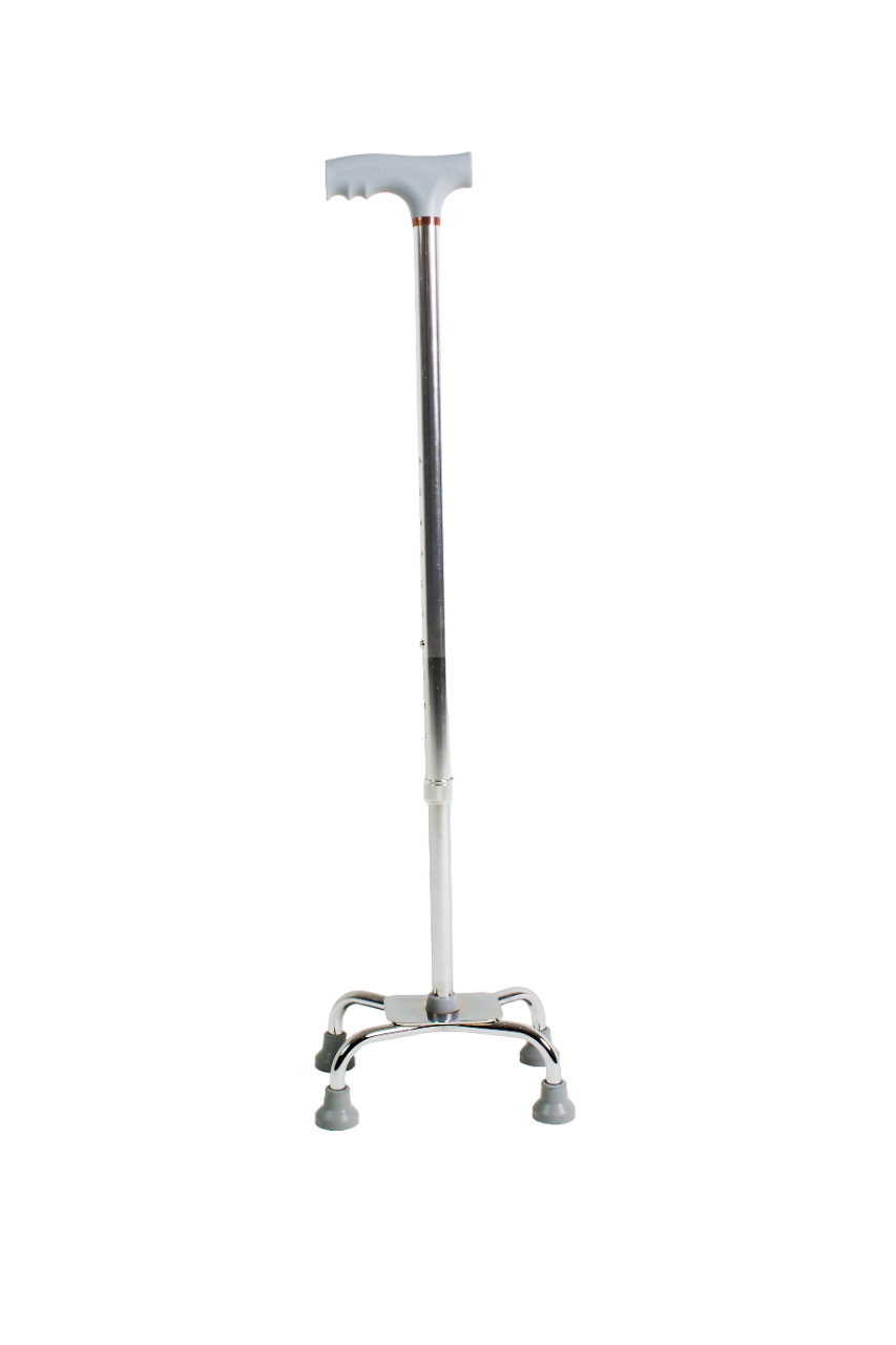 Este bastón está fabricado en aluminio anodizado de alta resistencia, lo que le proporciona durabilidad y ligereza. Su base cuadrúpeda de cuatro puntos mejora la estabilidad del usuario al distribuir uniformemente el peso corporal. La empuñadura anatómica está recubierta con material antideslizante que garantiza un agarre cómodo y seguro. Además, cuenta con un sistema de altura ajustable mediante botón de presión, lo cual permite adaptarlo a las necesidades individuales. Cada uno de los puntos de apoyo está equipado con topes de goma antideslizantes que previenen resbalones en distintas superficies.