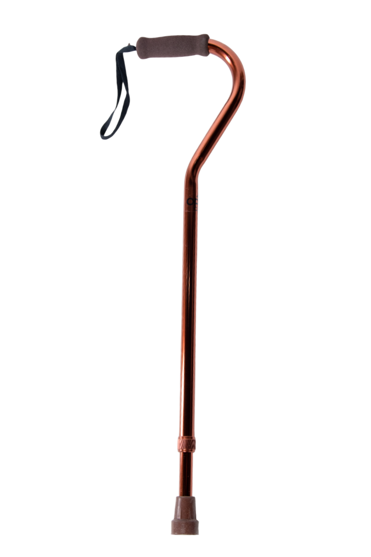 El bastón está fabricado en aluminio resistente. Cuenta con una empuñadura tipo curva de goma, cómoda y ergonómica, que facilita el agarre y el control. Su altura es ajustable mediante botón de presión, y termina en una contera de goma antideslizante que proporciona tracción segura al caminar.