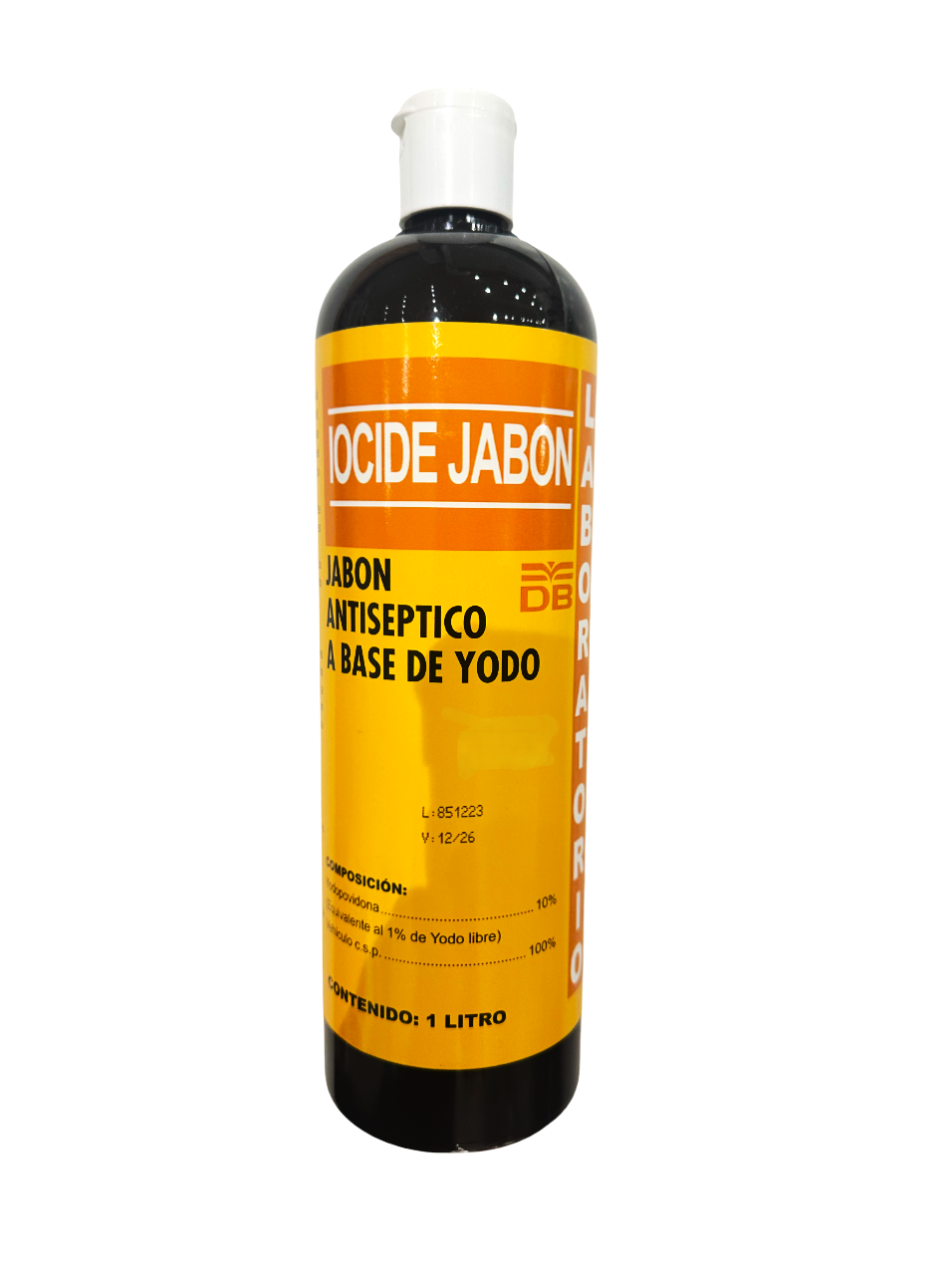 Este jabón contiene povidona yodada como principio activo, con una concentración típica del 7.5% equivalente a 0.75% de yodo libre disponible. Viene en presentación líquida, en envase de 1 litro con tapa a rosca o dispensador, según formato comercial. Tiene propiedades bactericidas, fungicidas y virucidas, eficaz contra una amplia gama de microorganismos. No reseca la piel y es de uso externo. Es de color marrón característico, soluble en agua y de fácil enjuague. Su formulación está diseñada para uso frecuente sin causar irritación.
